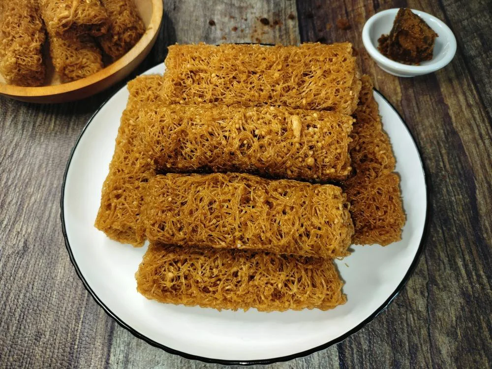 Kue ini sangat renyah saat digigit. Serabut halusnya memberikan sensasi unik di mulut.