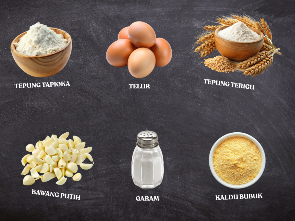 Gunakan bawang putih untuk aroma khas. Tambahkan garam dan kaldu bubuk untuk rasa gurih. Air panas membantu adonan menjadi kalis.