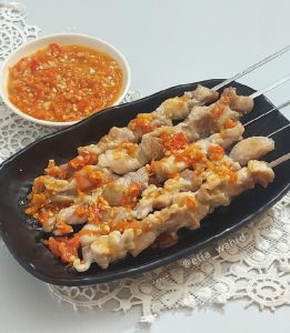 Penusukan: Tusuk daging ayam ke tusukan sate. Pastikan tidak terlalu rapat agar panas bisa merata ke setiap sisi daging saat dipanggang.